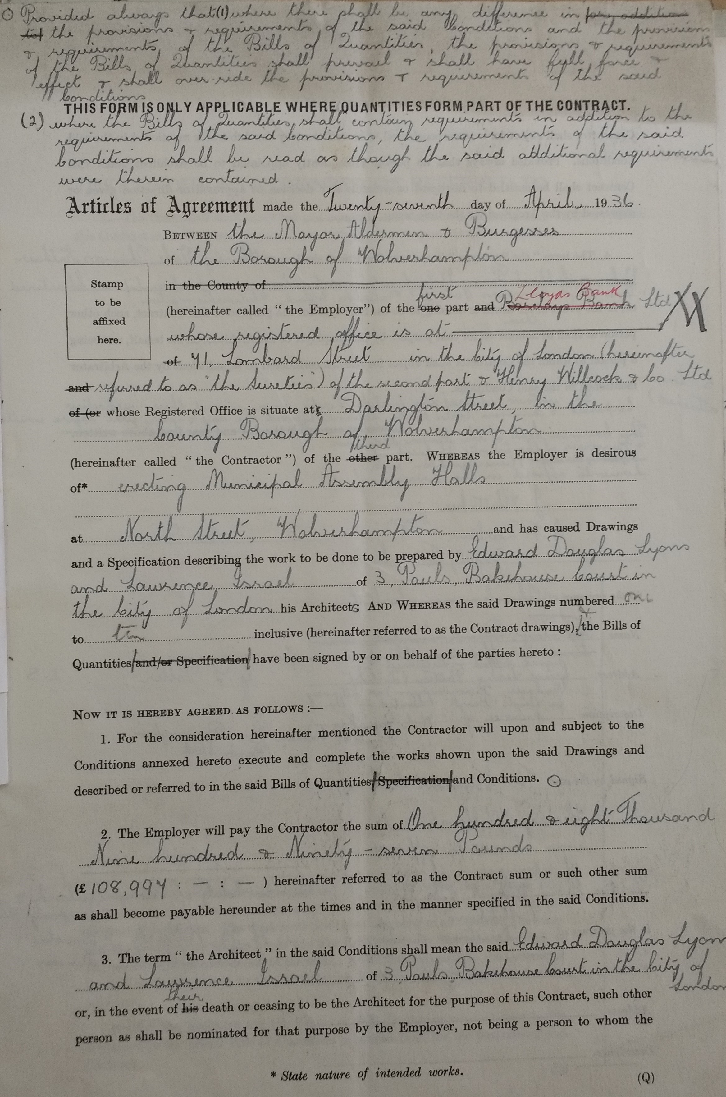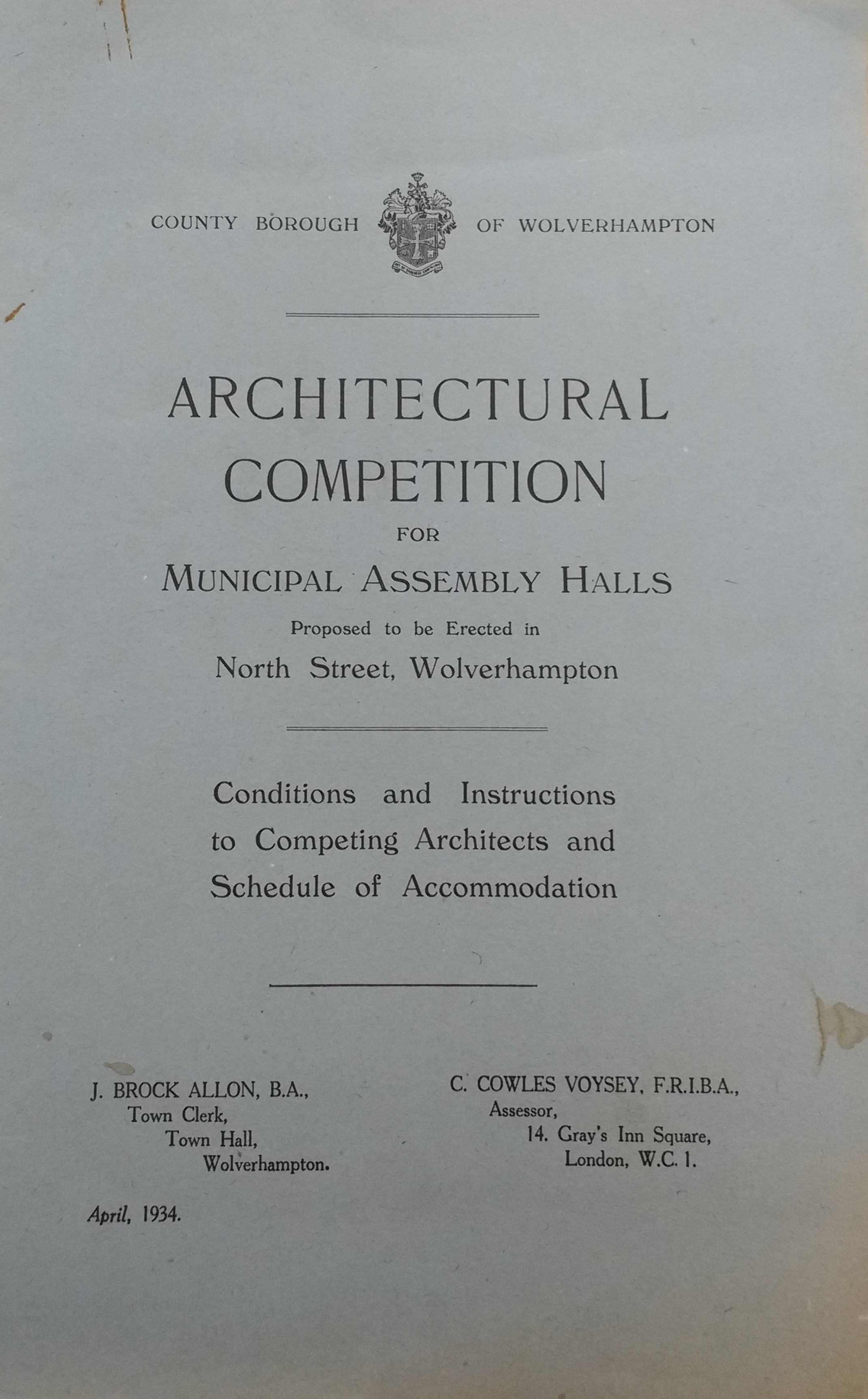 The original rules for the competition to design the Civic Halls