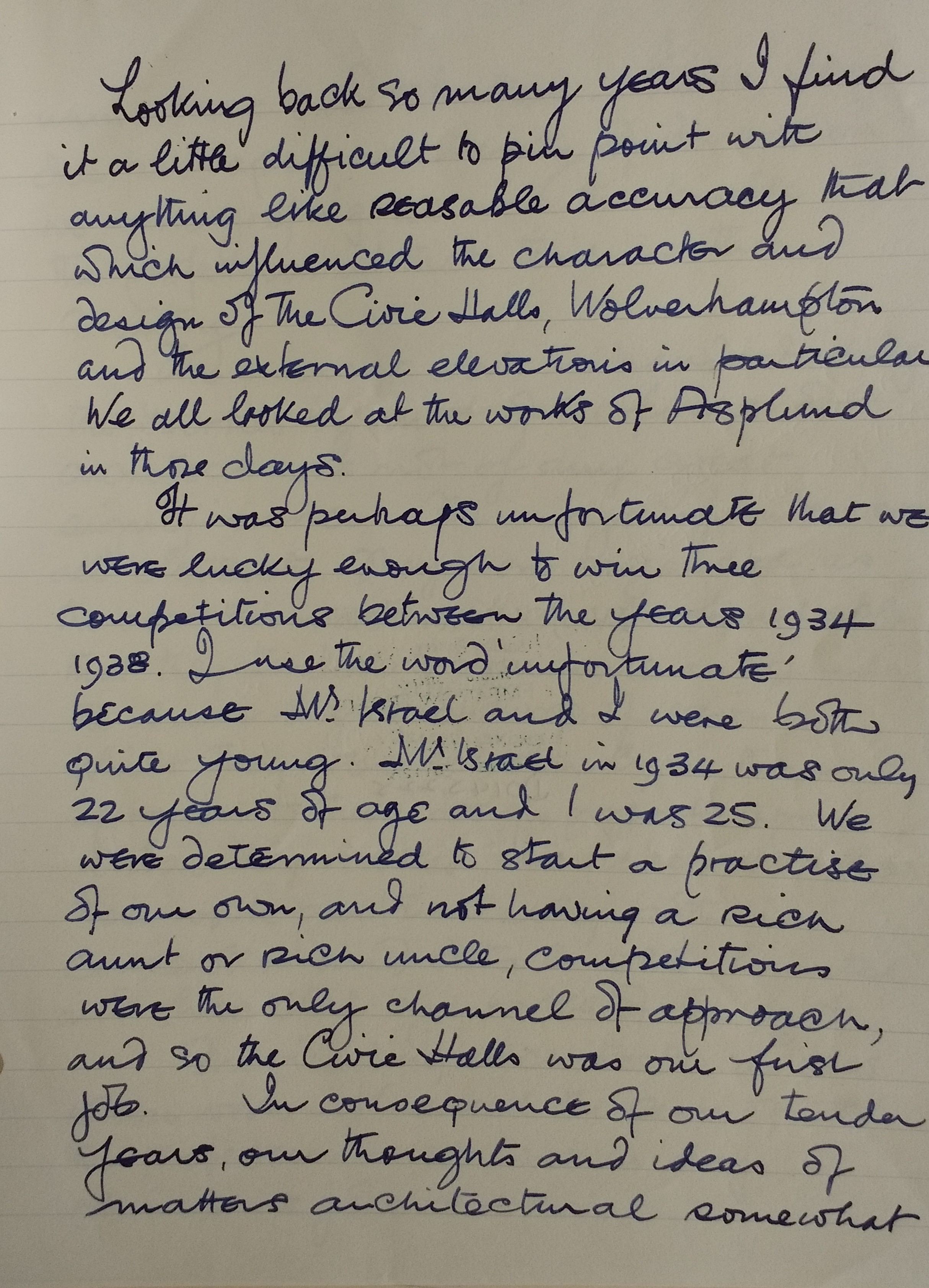 A letter from architect Edward Douglas Lyons with his memories of the project