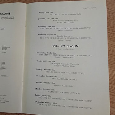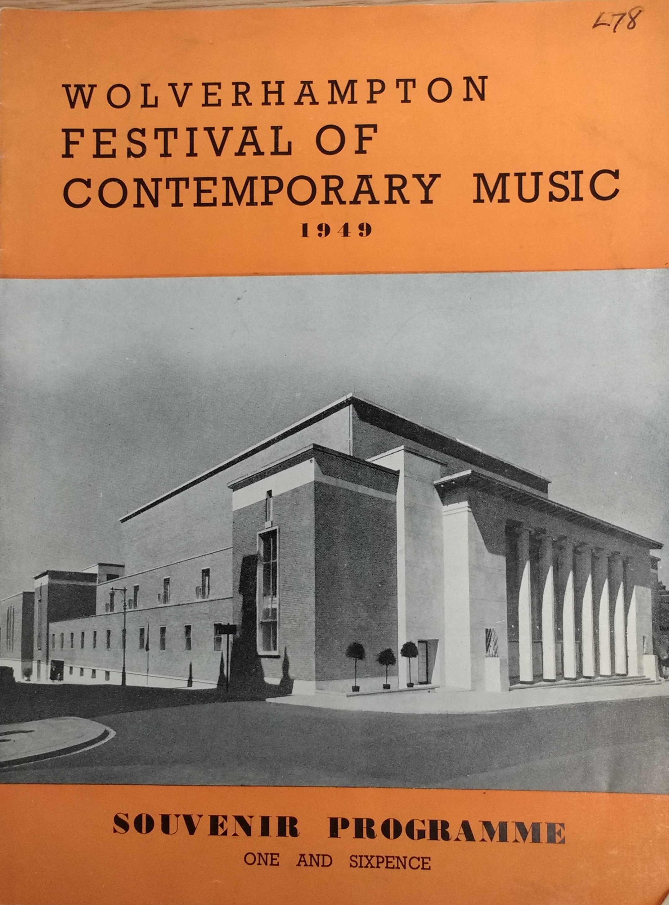 A souvenir brochure from Wolverhampton's festival of contemporary music in 1949. The festival was devoted entirely to music by living composers.