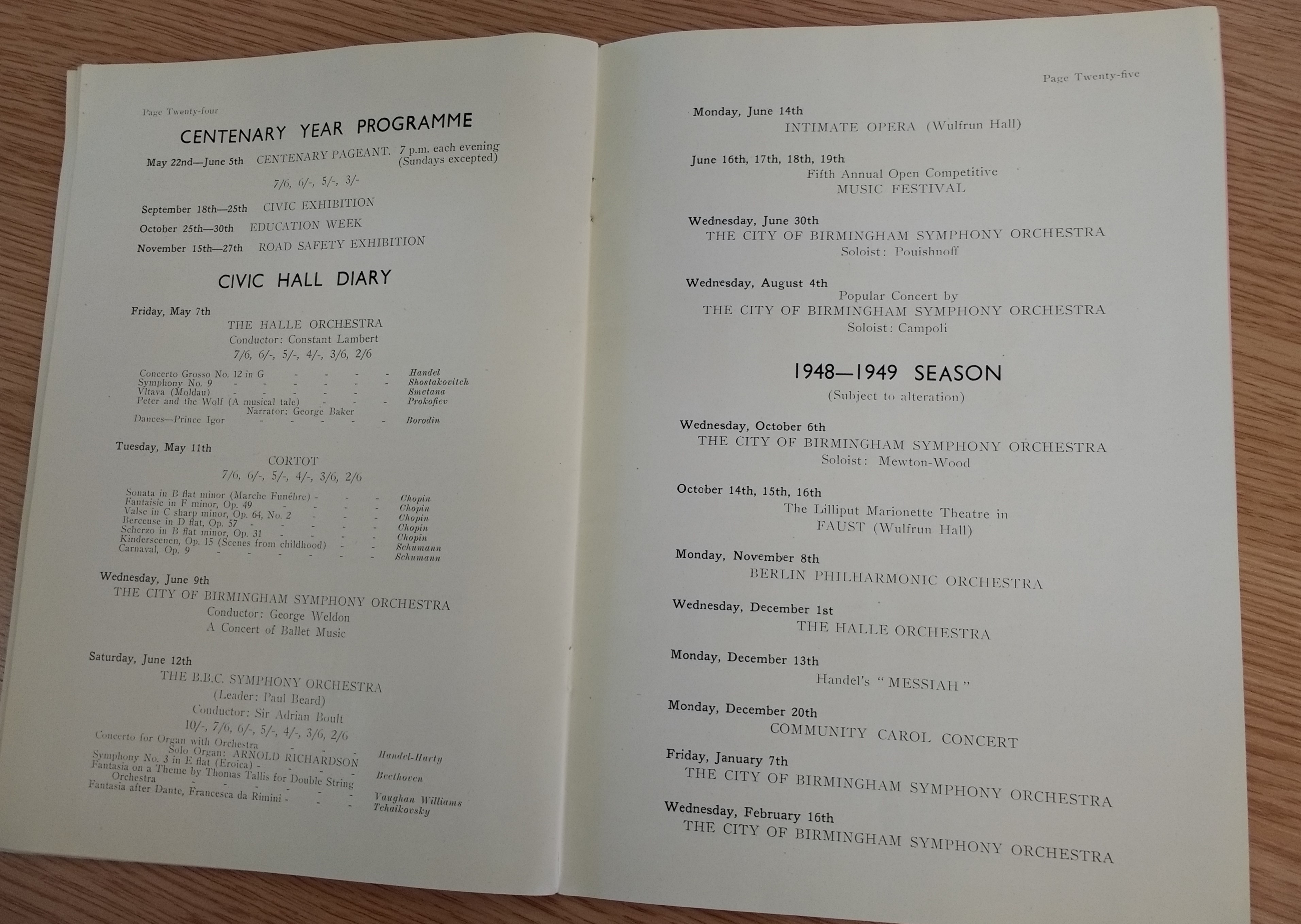 The 1948-49 concert season at the Civic Hall including a performance by the Berlin Philharmonic Orchestra