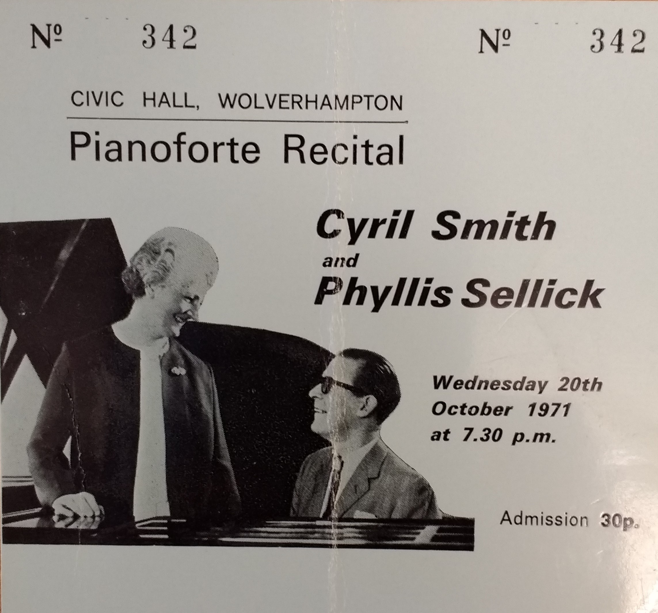 Husband and wife pianist team Cyril Smith and Phyllis Sellick gave a recital in October 1971.