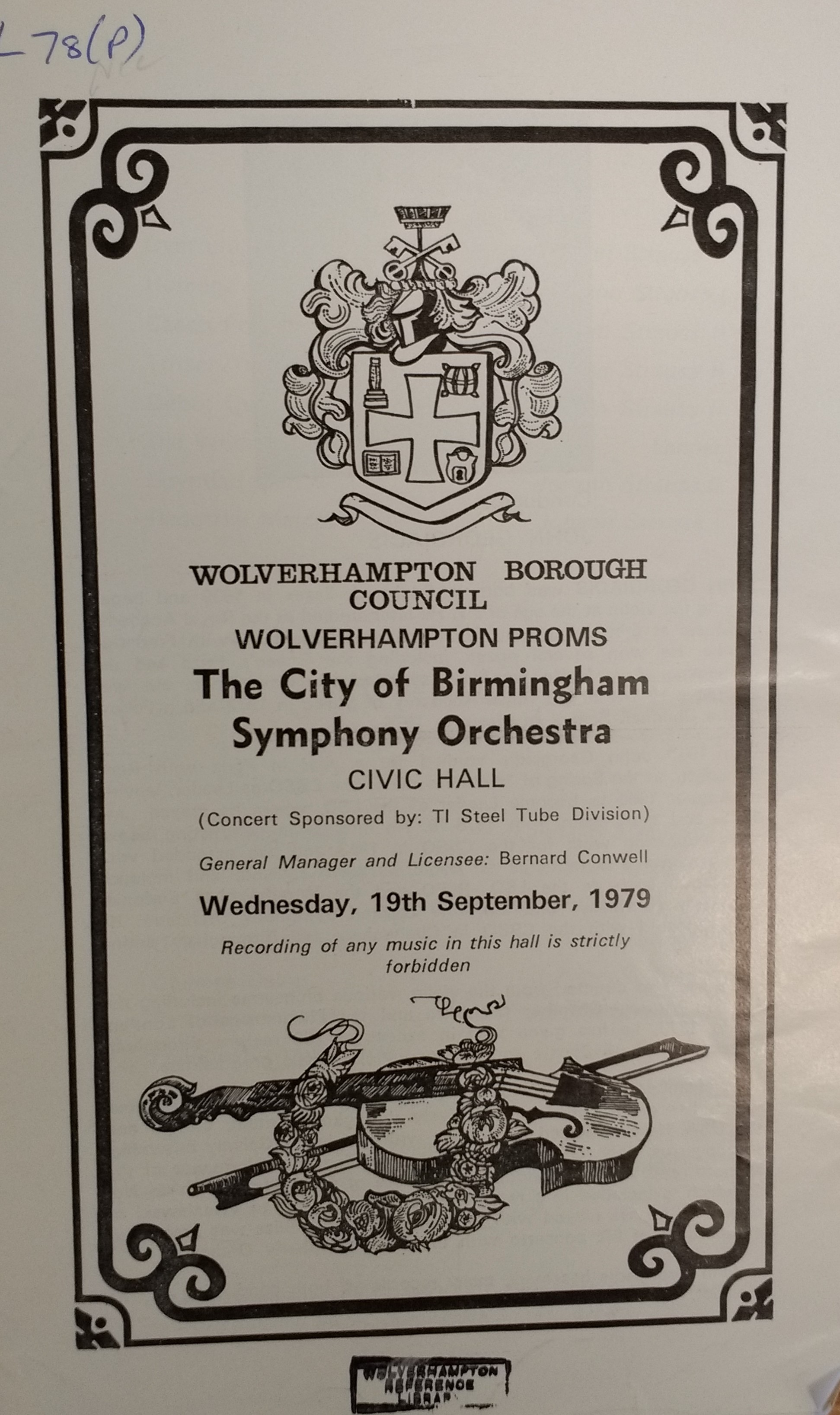 A brochure for the Wolverhampton Proms, in partnership with The City of Birmingham Symphony Orchestra, held in September 1979.