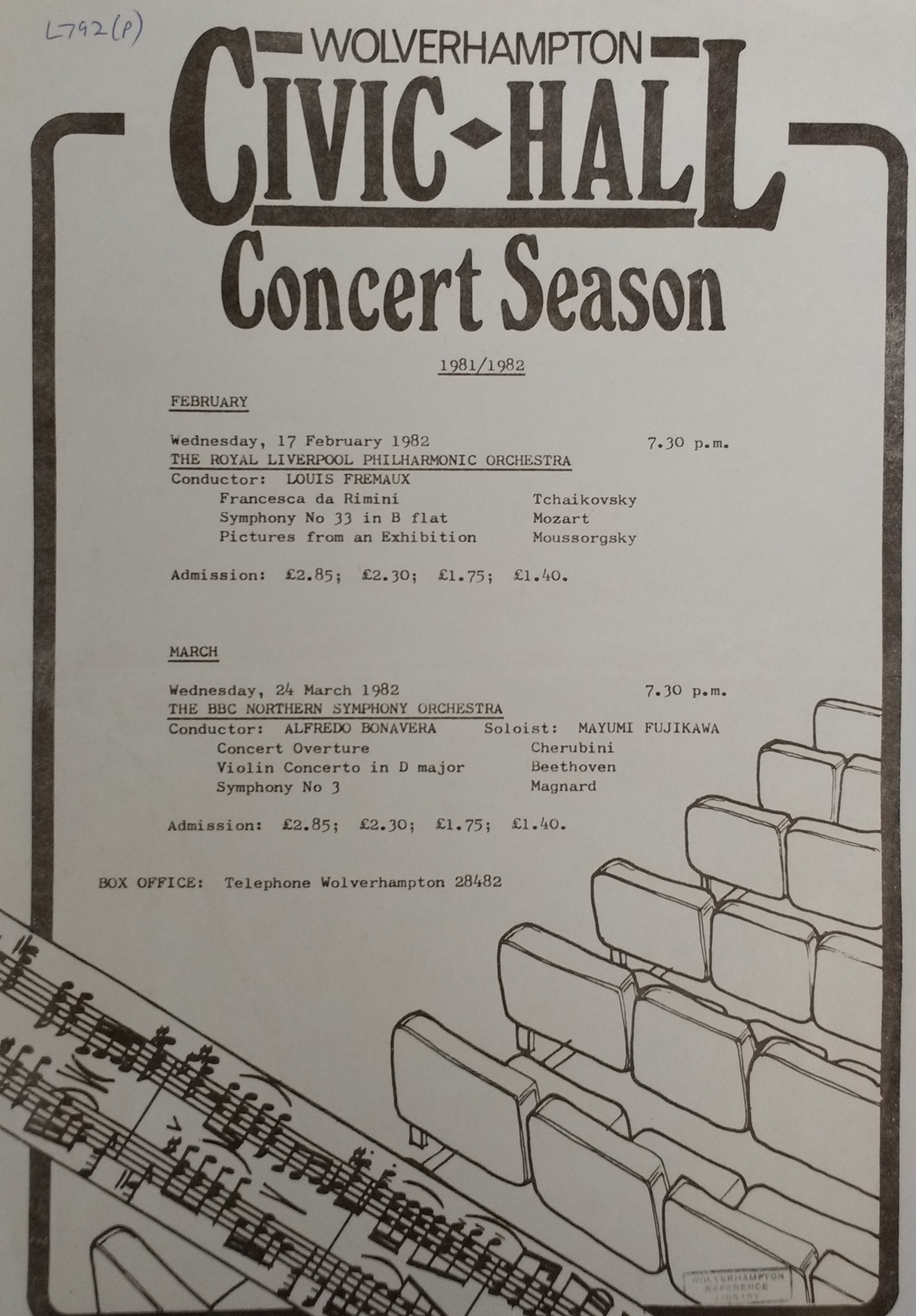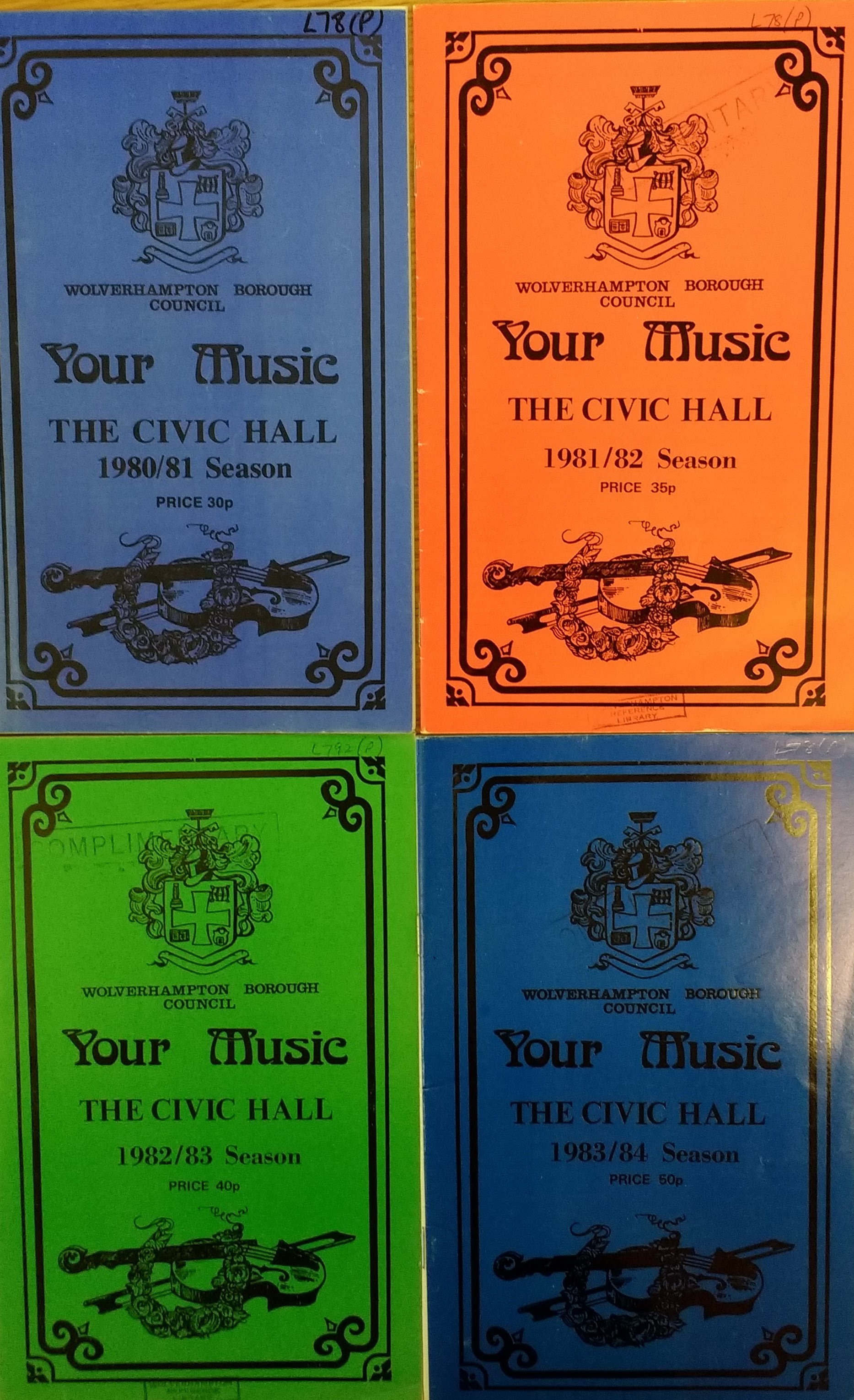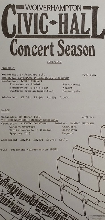 Your Music brochures detailing concerts on offer at the Civic during the eighties.