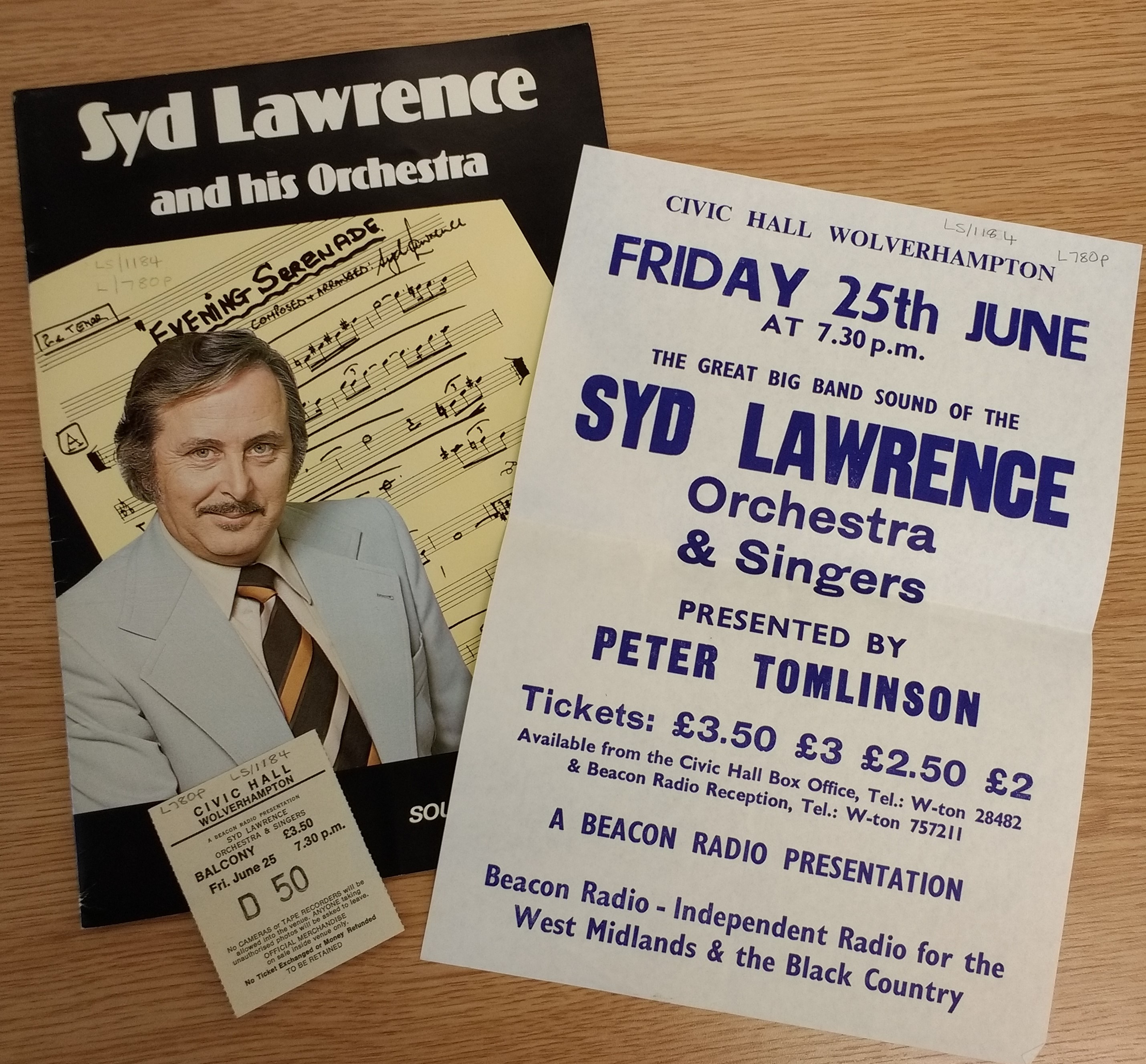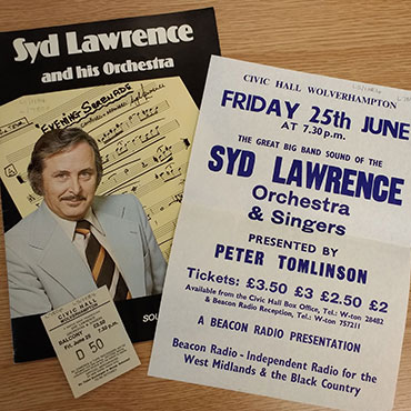Brochures and tickets for a performance by Syd Lawrence and his orchestra.